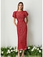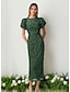 Strak / kolom Over de knie Cocktailjurken Feestjurken Elegant Bloemig Korte mouw Strakke ronde hals Tuinfeest Bruiloft Roze jurk Pailletten met Kralen Appliqués
