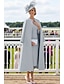 Tweedelig Strak / kolom Tot de knie Lange mouw Strakke ronde hals Elegant Stretchstof Moeder van de bruid jurk Jas Jurken met Effen kleur