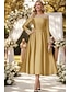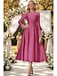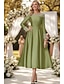 A-lijn Jurken Over de knie Kralenborduurwerk Feestjurk Cocktail jurk Moeder van de bruid jurk 3/4 mouw V-hals Elegant Vintage Bruiloft gast Cocktailparty Satijn Stretchstof met Kant Ruches Bloem