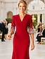 Strak kolom Tot de knie Feestjurk Cocktail jurk Bruiloft gast jurk Moeder van de bruid jurk Halve mouw V-hals Elegant Vintage Feest Cocktailparty Formele avonden Bruiloft met Kralen