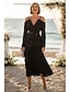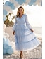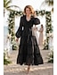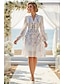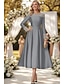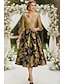 A-lijn Tot de knie Bruiloft gast jurk Jurken voor bruiloftsgasten Elegant Dagelijks Lange mouw V-hals Tuinfeest Bruiloft met Bloemenprint Opdruk Bandjes