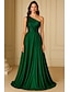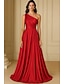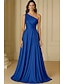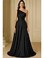 A-lijn Strijksleep Avondjurken Formele kleding Elegant Dagelijks Zijdeachtig Mouwloos Eén-schouder Bruiloft Formeel Satijn Jacquard met Ruches