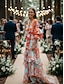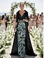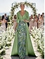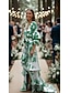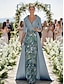 A-Lijn Vloerlange Bruilofts Gast Jurk Formele Jurken Avondjurk Moeder van de Bruid Jurk Lange Mouwen V-Hals Feest Bruilofts Gast met Print