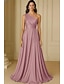 A-Lijn Moeder van de Bruid Jurk Bruiloft Gast Elegante Zoete V Hals Vloer Lengte Chiffon Lange Mouw met Ruffles Ruching