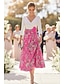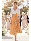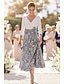Strak kolom Over de knie Bruiloft gast jurk Jurken voor bruiloftsgasten Elegant Dagelijks Mouwloos Revers Tuinfeest Bruiloft met Bloemenprint Plooien