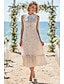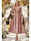 A-lijn Over de knie Cocktailjurken Elegant Korte mouw Boothals Tuinfeest Bruiloft Taft Stretchsatijn met Plooien