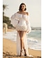 Strand Open Rug Boho Bruidsjurken A-lijn Off Schouder Kap Mouw Court Train Kant Bruidsjurken Met Applicaties Effen Kleur