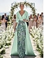 Zeemeermin Trompet Moeder van de Bruid Jurk Bruiloft Gast Elegant V Hals Vloerlengte Kant Mouwloos met Kant