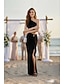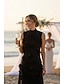 Strak kolom Tot de grond Feestjurk Bruiloft gast jurk Jurken voor bruiloftsgasten Elegant Mouwloos Hoge nek Bruiloft Feestkleding met 3D-bloemen