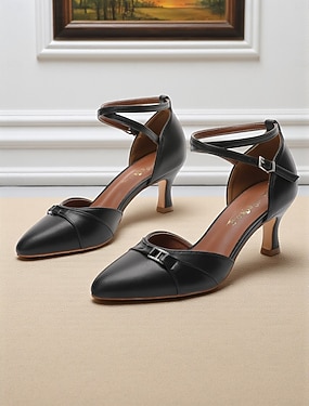 Zwarte stiletto sandalen met enkelbandje voor dames – elegante hakken voor bruiloftsgasten bij evenementen in de stad.
