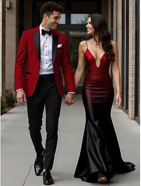 Heren Bruiloft Feest Kostuums Rood Luxe Formeel Effen Getailleerd 2-delige set Dubbele knoopssluiting zes knopen