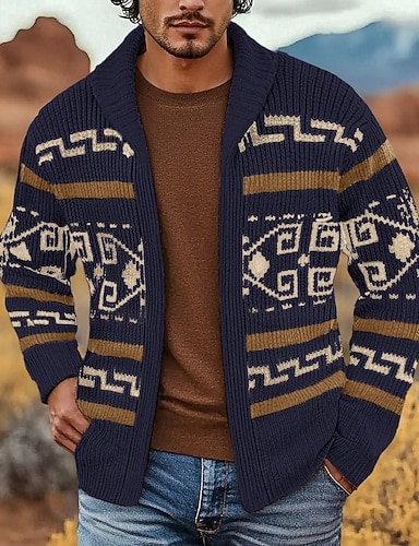 Voor heren Jacquard trui Vest Trui Fair Isle trui Trui met rits Gebreid vest breien Vetoketju Tribal Opgerolde kraag Modieus Klassiek Dagelijks Buiten Kleding Drop Shoulder Herfst winter Marineblauw