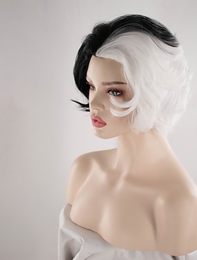 101 gevlekte pups Cruella De Vil Jurken Cosplay Pruiken Gemaskerd Bal Cosplay Kostuum Sexy kostuum for Dames Volwassenen Maskerade