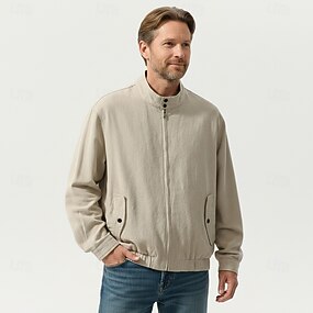 Heren Lichtgewicht jack Casual Buiten Rits omhoog minimalistische Lente Met Textuur Vintage Casual / Dagelijks Opstaand Normaal Beige Jacks