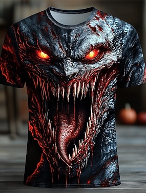 Voor heren Draak 3D T-shirt Korte mouw T-shirt 3D-afdrukken Strakke ronde hals Overhemd overdreven Ontwerper Verschrikking Feest Straat Casual Zwart 1 Wit Rood Zomer Lente Alle seizoenen Kleding S M
