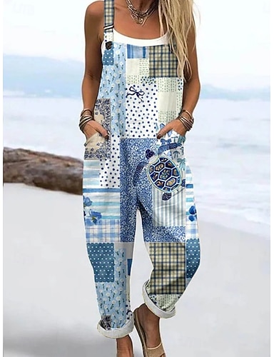 Dames Tuinbroek Actief Grafisch Mouwloos Afdrukken Dagelijks Strand Ruim Passend blauw Wit Groen Zomer