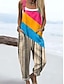 Dames Al met al Actief Grafisch Mouwloos Mouwloos Recht Vierkante hals Zak Afdrukken Dagelijks Strand Ruim Passend blauw Wit Oranje Zomer