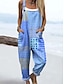 Onafhankelijkheidsdag dames overall actieve grafische mouwloze wijde pijpen ronde hals patchwork dagelijkse vakantie losse pasvorm blauw zomer