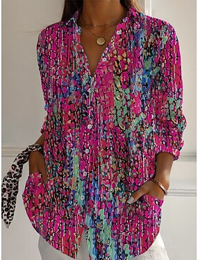 Dames Overhemd Knop Afdrukken Bloemig Actief Dagelijks Stijlvol Lange mouw Overhemdkraag Normale tops Dagelijks Feestdagen blauw Rood Fuchsia Groen Lente Herfst
