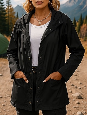 Dames Windjack Wandeljack Regenjas Buiten waterdicht Winddicht Wandeloutfits Wandelkleding Lente Herfst Kleding Bovenlichaam Kamperen / wandelen / grotten verkennen Hardlopen Effen Kleur Zwart Leger