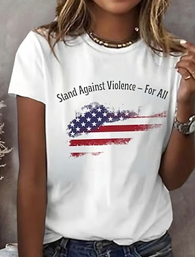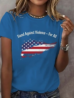 Amerikaanse onafhankelijkheidsdag Dames T-shirt Afdrukken Grafisch Stijlvol Klassiek Casual Korte mouw Asymmetrische nek Normale tops Dagelijks Uitgaan Weekend blauw Rood Rood / blauw Zomer Lente