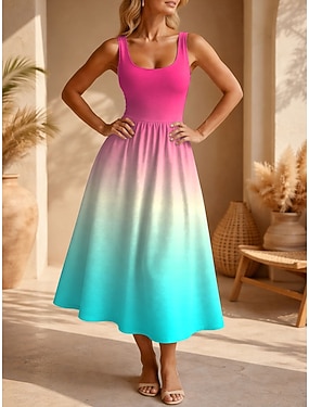 Dames Halflange jurk Zonnejurk A lijn jurk Vakantie Casual Boho Strand Afspraakje Normale pasvorm Ombre Grafisch Mouwloos U-hals Blozend Roze Paars Oranje Zomer Lente