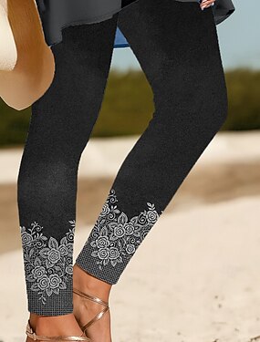 Dames Leggings Vakantie Vintage Etnische stijl Enkellengte Hoge taille Bloemig Grafisch 3D-afdrukken Sneldrogend Ademend Zacht Rekbaar Dagelijks Huis Buiten Zwart Wit Blauw Lente Herfst Mager