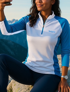 Dames Polo-sweatshirt Wandelshirt Wandeltop Lange mouw Opstaand Kleding Bovenlichaam Buiten Ademend Sneldrogend Lichtgewicht Kwartrits Polyester Lapwerk Wit Tennis Golf Hardlopen