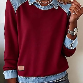 Dames Overhemd Wafel T-shirt Waffle Lounge T-shirt Blouse Lapwerk Knop Kleurenblok Stijlvol Klassiek Modern Lange mouw Overhemdkraag Normale tops Dagelijks Feestdagen Uitgaan Zwart Wijn Rood