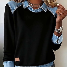 Dames Overhemd Textuur Blouse Waffle Lounge T-shirt T-shirt Lapwerk Knop Kleurenblok Actief Casual Lange mouw Overhemdkraag Normale tops Dagelijks Feestdagen Uitgaan Wit Herfst Winter