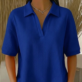 Dames Wafel Shirt T-shirt Poloshirts T-shirts Knop Effen Stijlvol Klassiek Modern Korte mouw Overhemdkraag Normale tops Dagelijks Feestdagen Uitgaan Zwart Wit Rood Hemelsblauw Zomer Lente