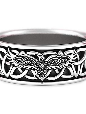 gotische sieraden, retro ring, heren en vrouwen ring, Noorse mythologie reusachtige wolf fenrir verdedigen tempel raaf amulet sieraden vriendje cadeau mens viking hip hop rock ring (6)
