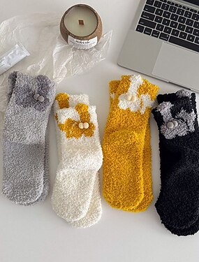 4 paar damessokken met ronde hals, werk, dagelijks, vakantie, retro, katoen, klassiek, casual, formeel, warm, casual, schattige sokken