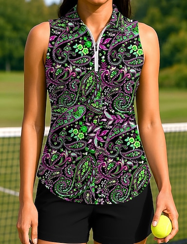Dames Paisley Multi Kleur Tops Sportshirt Wandelen poloshirt Tennisshirt Mouwloos Vetoketju UPF50+ UV-bestendig Hoge Elasticiteit Vochtregelerend Ademend Tennis Augurkbal Hardlopen Strijkijzer Rits