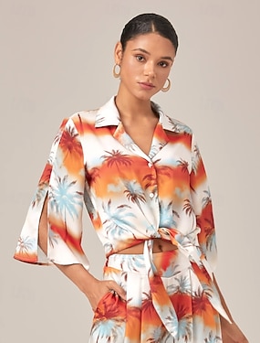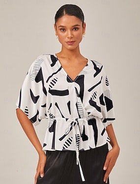 Tropische verleiding soepele blouse van chiffon met dolmanmouwen