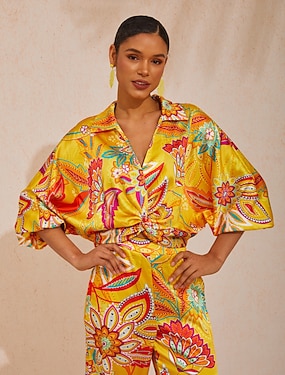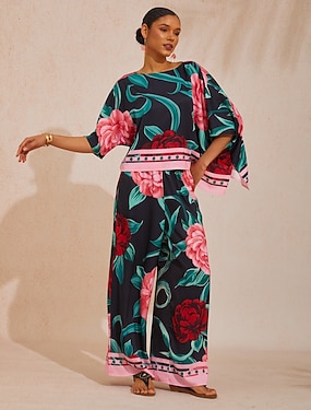 Zomerse ontsnapping: zijdezachte satijnen broek met bloemenprint en wijde pijpen