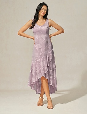 Dames Maxi-jurk Jurk met ruches Elegant Dagelijks Vakantie Bruiloft gast Kant Meerlaags Normale pasvorm Bloemig Mouwloos Strakke ronde hals Lila