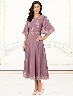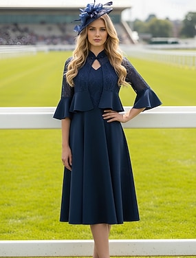 A-lijn thee lengte prom jurk feestjurk cocktailjurk bruidsmoeder jurk korte mouw crew hals elegant vintage feest trouwgast met borduursel kleurblok