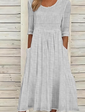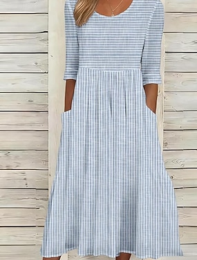 Dames Halflange jurk Casual jurk Katoenen jurk A lijn jurk Modieus Modern Dagelijks Vakantie Feestdagen Normale pasvorm Gestreept 3/4 mouw Strakke ronde hals Licht Blauw Zomer Lente