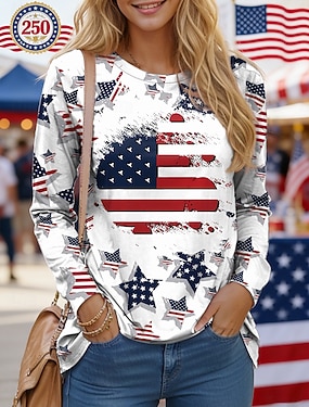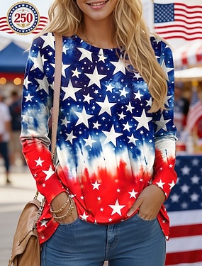 Amerika's 250e verjaardag Independence Day Dames Geometrisch Nationale vlag Tops Sportshirt Wandelen poloshirt Tanktop Mouwloos Bloemig Knop UPF50+ UV-bestendig Hoge Elasticiteit Vochtregelerend