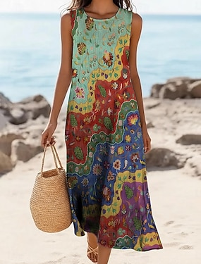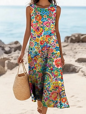 Dames Lange jurk maxi-jurk Boho-jurk Vintage Jurk Casual jurk Vintage Feestdagen Ruim Passend Bloemig Mouwloos V-hals blauw Rood Beige Zomer Lente