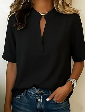Dames Overhemd T-shirt Blouse Modieus Lange mouw V-hals Normale tops Casual Strand blauw Wit Rood Groen Zwart Zomer