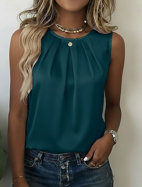 Dames Singlet Met ruches Effen Modieus Stijlvol Klassiek Mouwloos Strakke ronde hals Normale tops Dagelijks Uitgaan Weekend blauw Wit Marineblauw Hemelsblauw Groen Zomer Lente