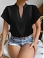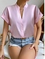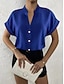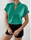 Dames Overhemd Blouse T-shirt Lapwerk Knop Effen Elegant Vakantie Vintage Korte mouw V-hals Normale tops Dagelijks Feestdagen Uitgaan blauw Zwart Blozend Roze Oranje Groen Zomer Lente
