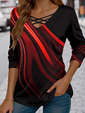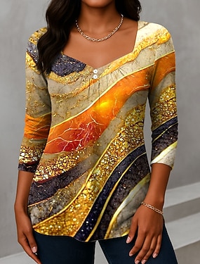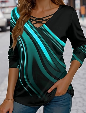 Dames T-shirt Lange Mouwen Crew Neck Lange Mouwen Tuniek Ombre Grafisch Textuur Vintage Stijlvol Modern Ronde Hals Regular Tops Dagelijks Print Blauw Paars Oranje Groen Fall Prefall