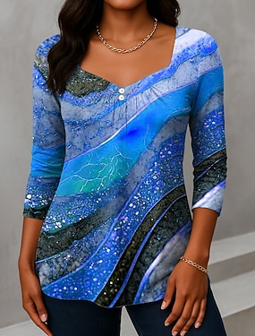 Pasen Dames T-Shirt Ombre Bloemen Graphic Elegant Vintage Stijlvol 3/4 Mouw V-hals Reguliere Tops Dagelijks Uitgaan Knoppen Blauw Roze Rood Groen Zomer Lente