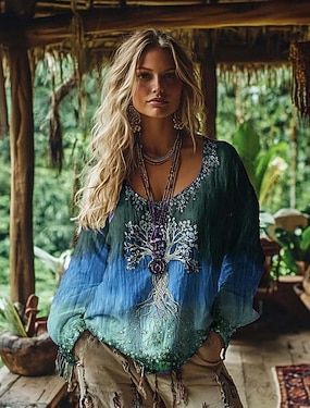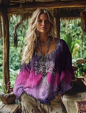 Vrouwen Linnenachtige Faux Katoen Linnen Shirt Boho Shirt Bohemia Vintage Dagelijkse Lange Mouw Lange Tops Dagelijkse Vakantie Uitgaan Blauw Wit Geel Roze Hemelsblauw Zomer Lente