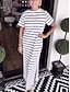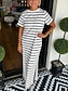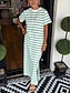 Dames Maxi-jurk T shirt jurk Casual Dagelijks Buiten Feestdagen Normale pasvorm Streep Korte mouw Strakke ronde hals Zwart Wit Groen Donkerblauw Zomer