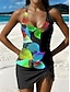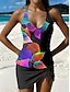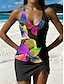 Dames Zwemkleding Tankini 2 stuks Jongen been Zwempak Blote rug Hoge taille Vakantie Strand Kleding Bloemig U-hals Mouwloos Badpakken