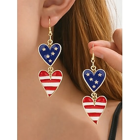 Verenigde Staten 250e Verjaardag Vrouwen Gelegenheidset van Patriottische Dangle Oorbellen Meerdere USA Vlag Hart Stijlen Rood Wit Blauw Statement Sieraden voor Feesten Festival Draag